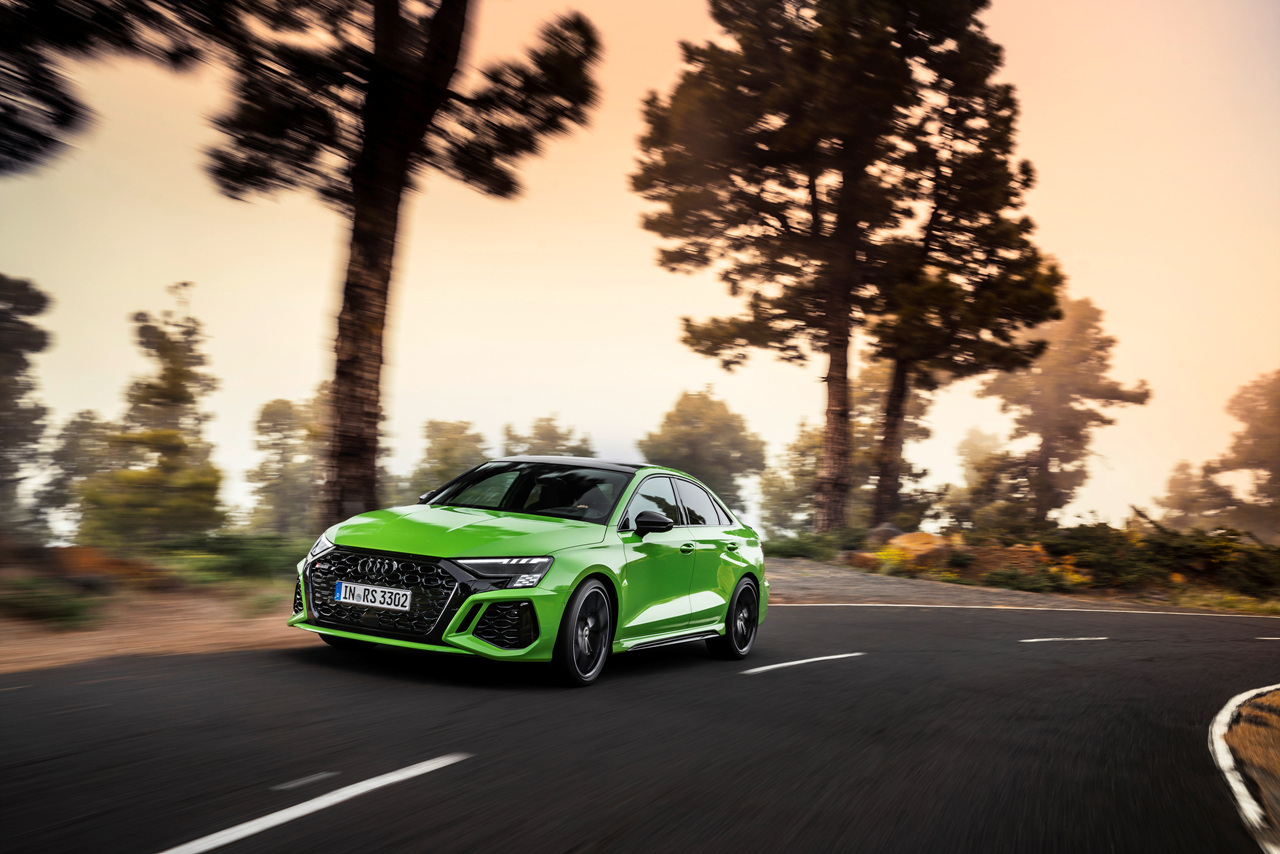 아우디 RS3는 준중형 세단의 포지션을 갖추고 있으며, 고성능 차량입니다.