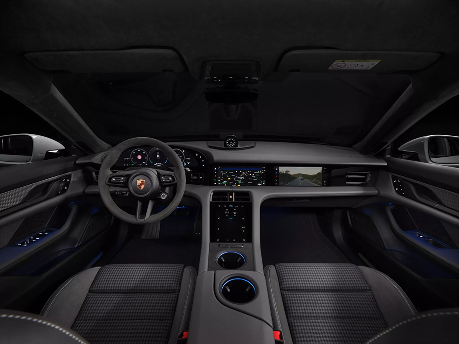 포르쉐 타이칸 페이스리프트의 실내입니다. 실내의 계기판의 인테페이스를 조금 개선하였고