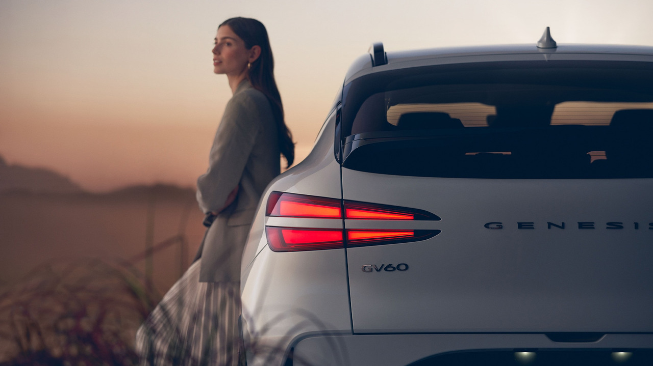 제네시스 GV60의 후면부입니다. 날카롭게 적용된 테일램프가 스포티함을 더했습니다.