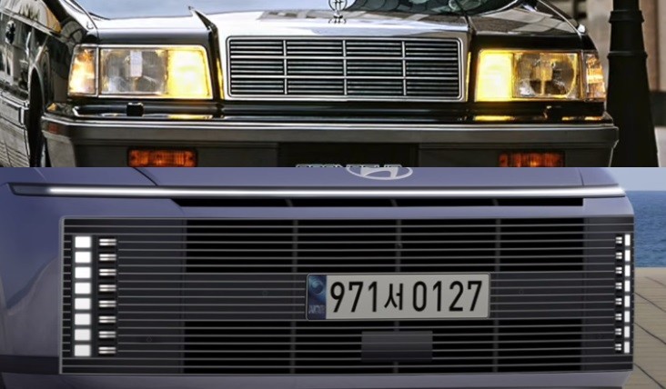 1세대 그랜저 그릴의 촘촘했던 패턴을 사용한 이미지와 플래그쉽 세단의 가치를 보여주는 요소들을 이번