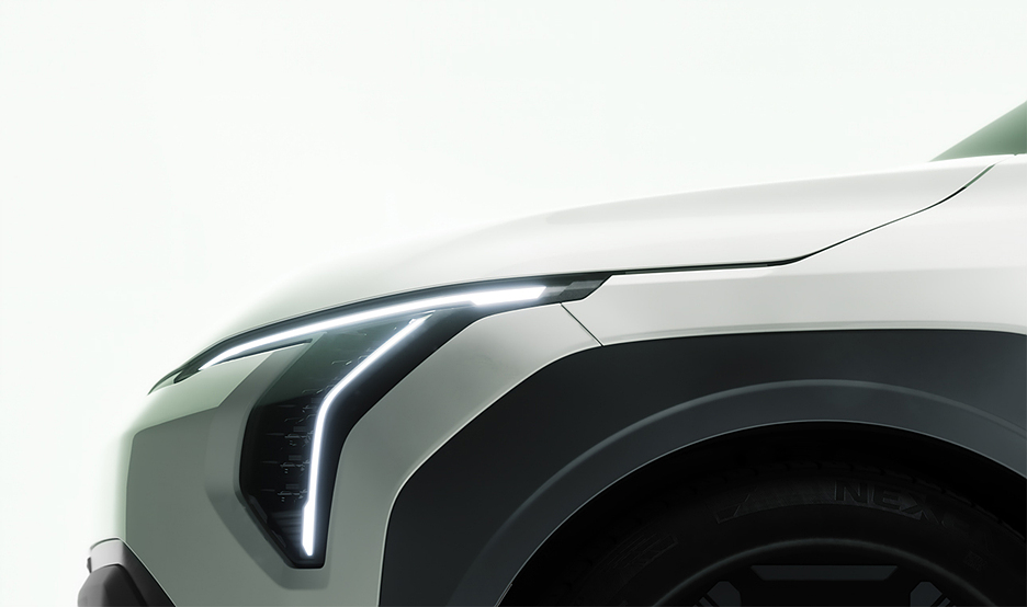 기아 EV3의 전면부는 스타맵 시그니처 라이팅을 채택하여 미래 지향적인 느낌을 주고 수직형 헤드램프가