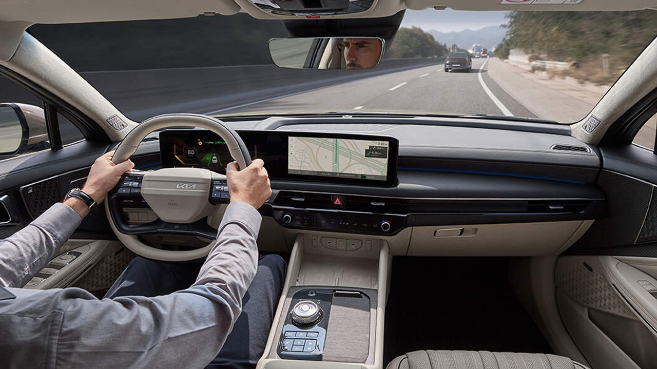 계기판과 센터 스크린이 통합된 커브드 디스플레이는 차세대 인포테인먼트 시스템을 지원하며, 증강현실 내비게이션과