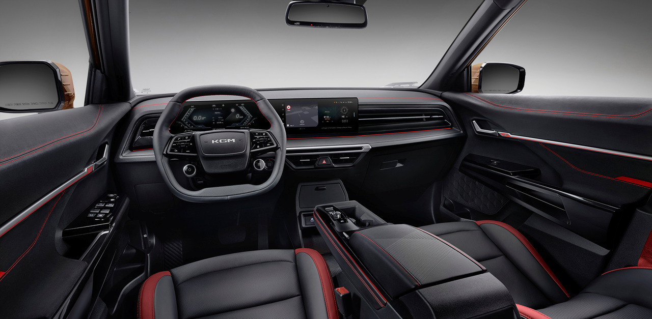 액티언의 실내는 '슬림 앤 와이드' 콘셉트로 깔끔하고 현대적인 느낌을 주고 잇습니다.