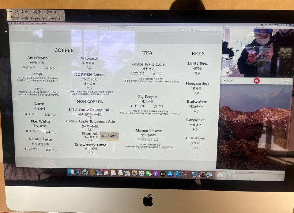 애플 컴퓨터를 사용하여 카페 메뉴를 보여줍니다.
