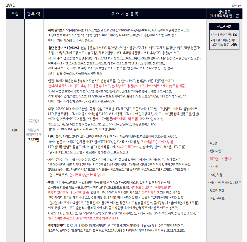 2025년형 EV9.의 가격은 다음과 같습니다.