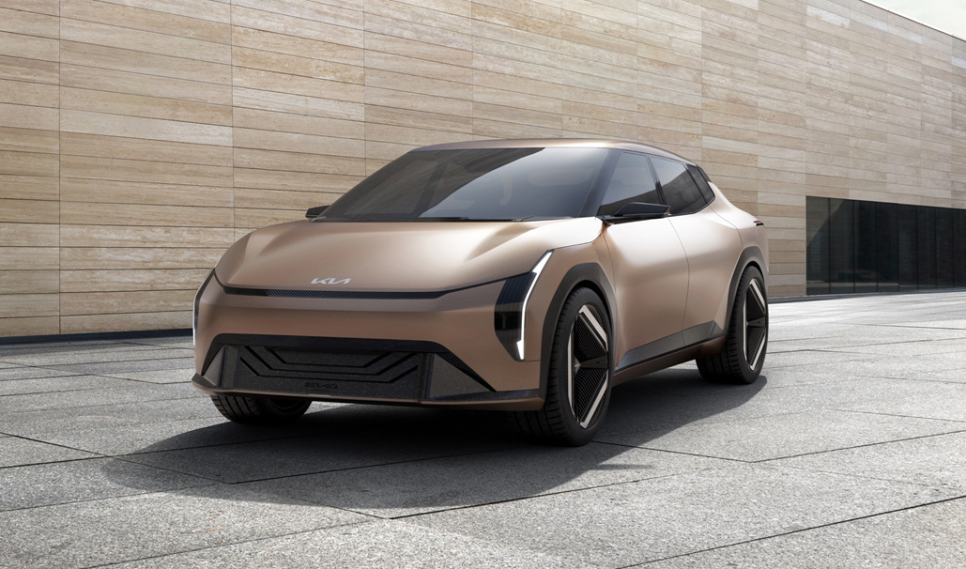 측면에선 느 매끄러운 루프라인이 기아의 고성능 세단 스팅어를 떠올리게 하며, 도어 손잡이는 오토 플러시 방식으로