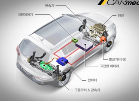 전기 모터가, 앞 차축에는 내연기관이 장착됩니다.