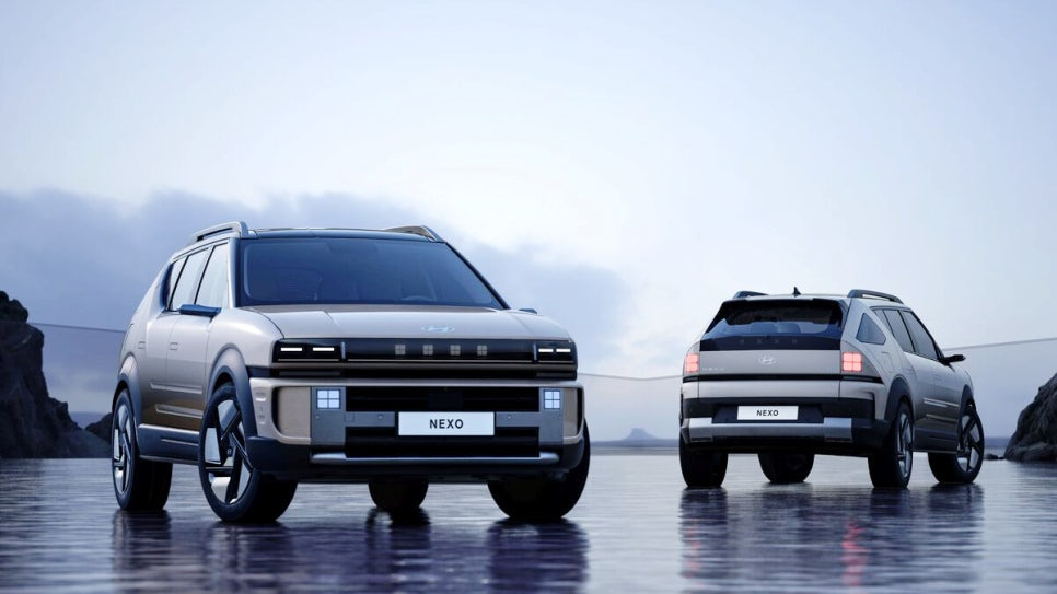 현대차는 ‘디 올 뉴 넥쏘’에 새로운 디자인 언어인 ‘아트 오브 스틸(Art of Steel)’을 도입해 소재의 물성과 강인함을 강조했습니다. 이 디자인은 작년 공개된 수소 콘셉트카 ‘이니시움’에서 영향을 받아, 미래지향적이면서도 SUV 특유의 견고함을 드러냅니다.